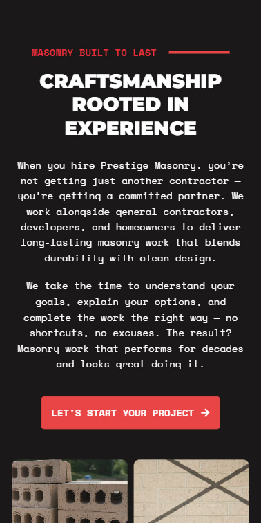 Prestige Masonry came to us with a clear goal: update a website that hadn’t been touched in over a decade. Their old site no longer represented the quality of their work or their growing team. They needed a modern, professional platform that not only showcased their masonry services but also helped them recruit new talent with a streamlined careers section.